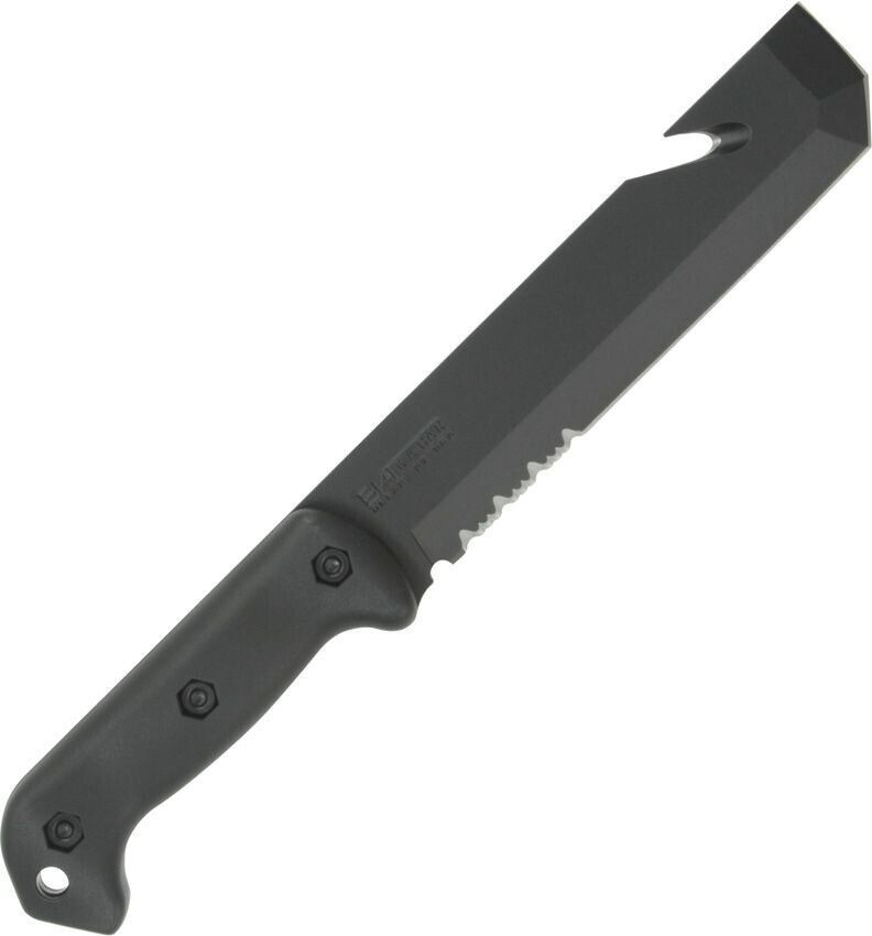A design collaboration between Ethan Becker of BK&T and John Benner of TDI, the Tac Tool smashes, bashes, pries, hammers and cuts. It is equally powerful at lifting stubborn hinge pins, prying open doors or windows, and hammering out glass as it is efficient at cutting 550 cord. A partially serrated edge makes cutting looped and synthetic materials a breeze. MOLLE compatible hard plastic sheath included.